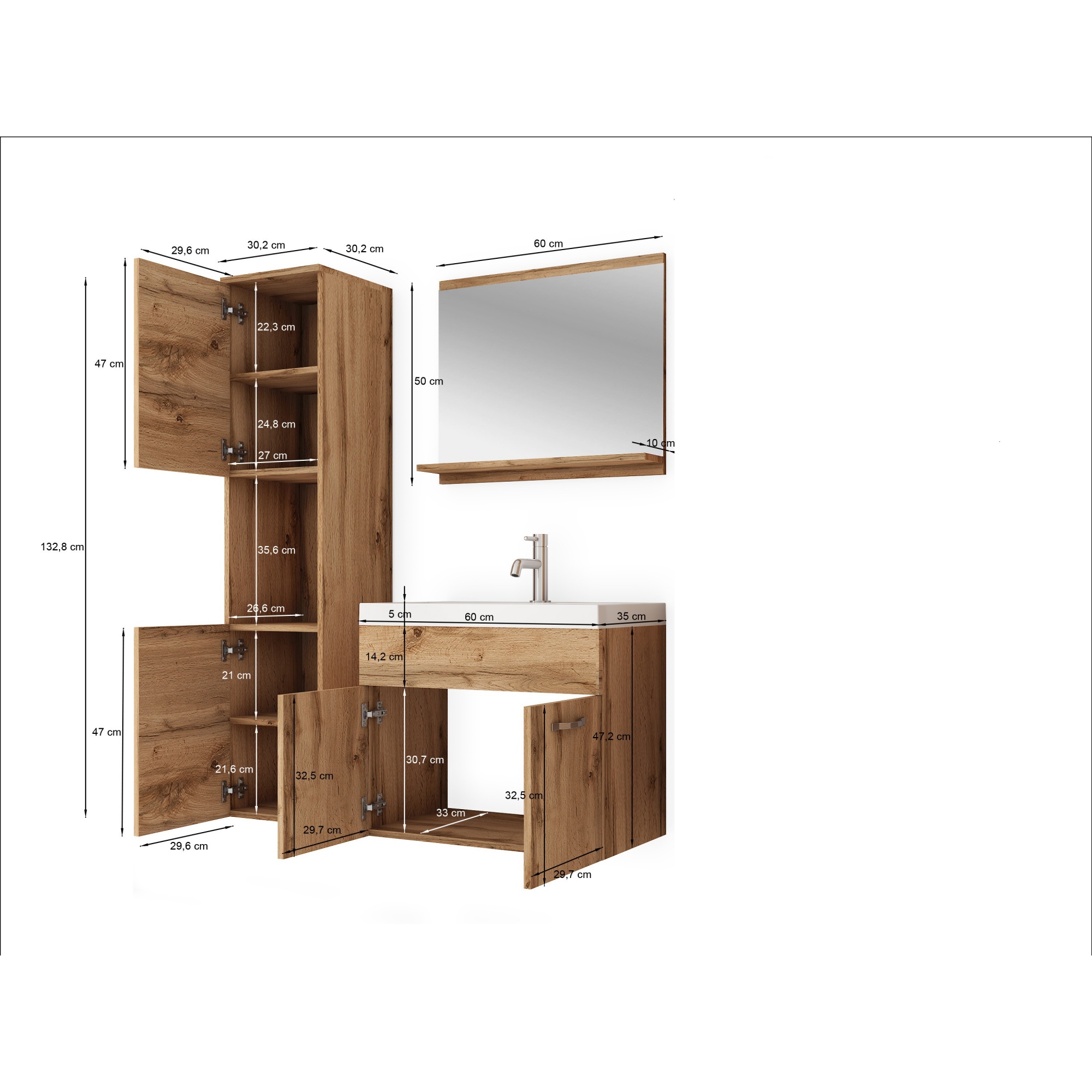 Waschbeckenunterschrank: 47,5 x 60 x 34,6 cm.