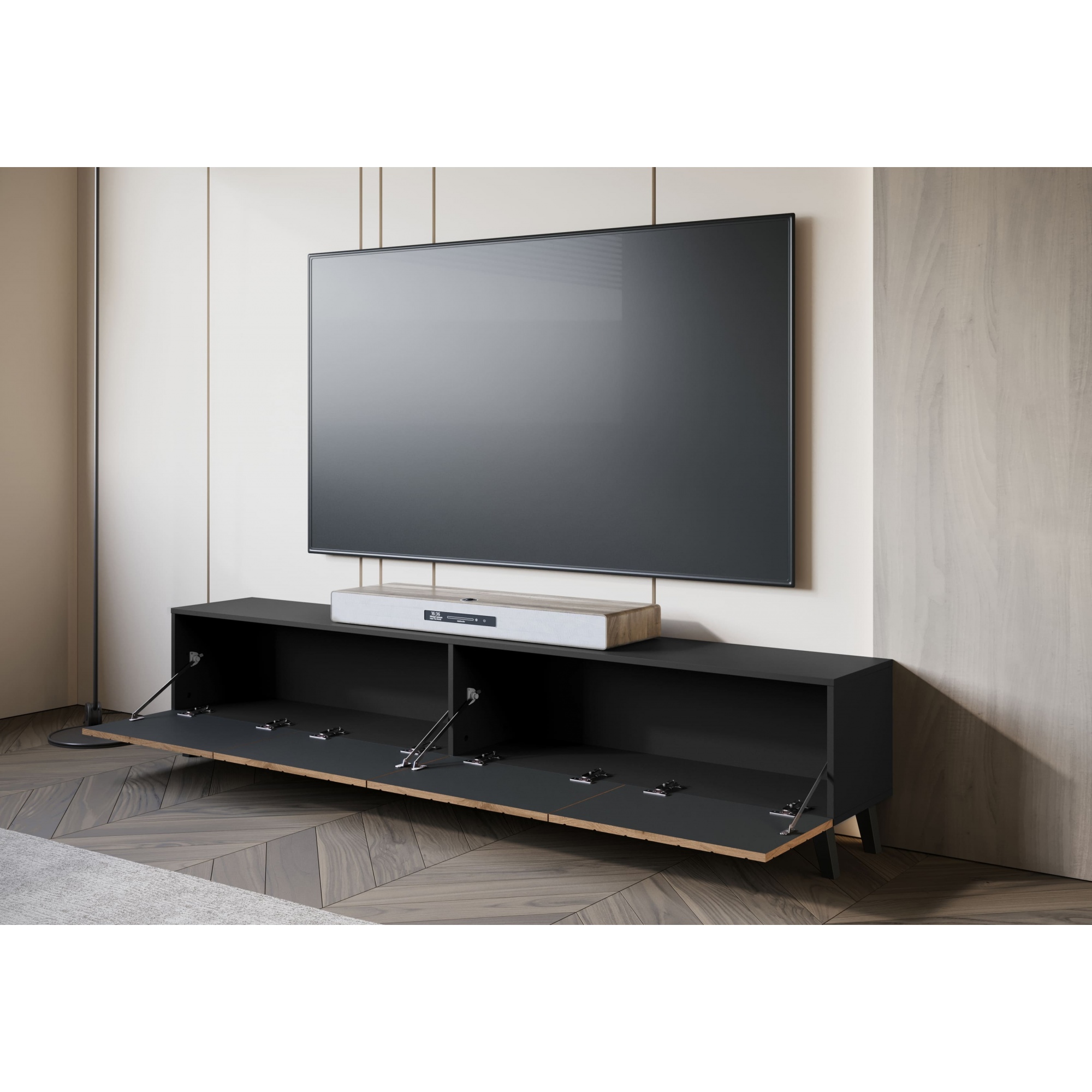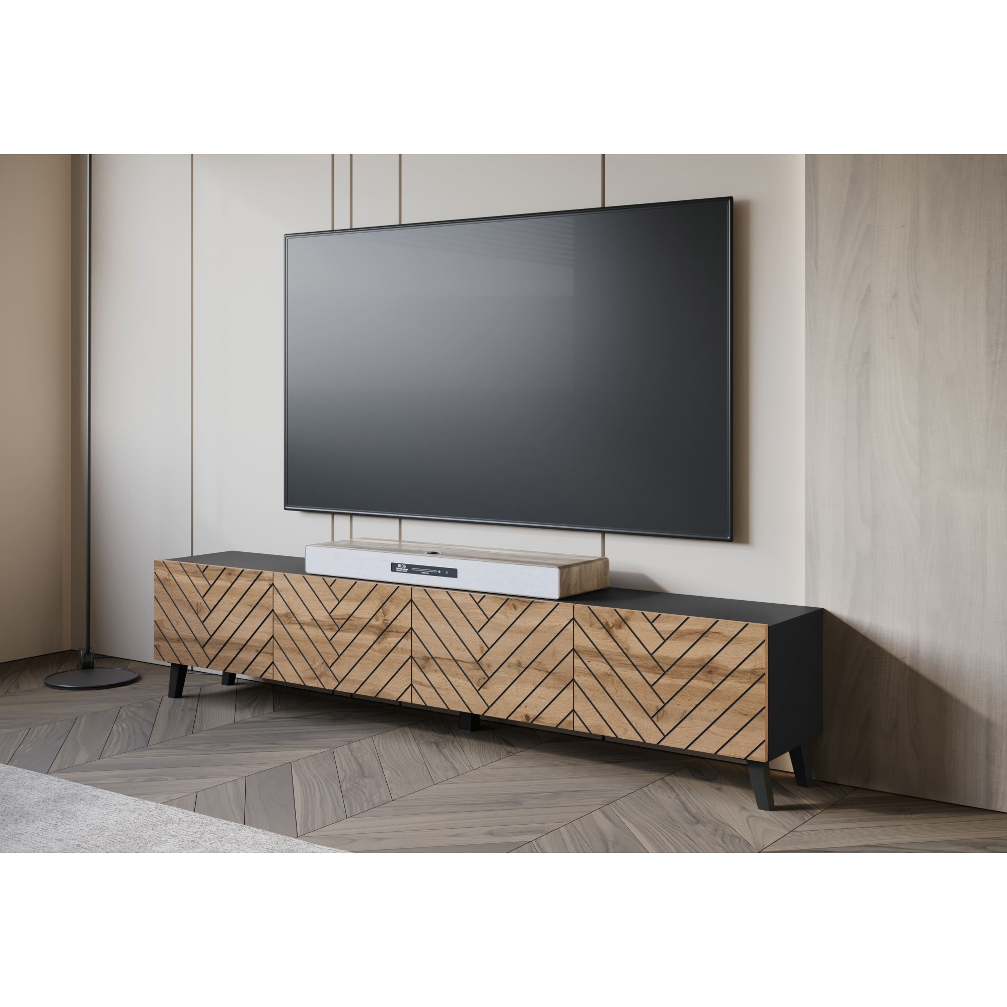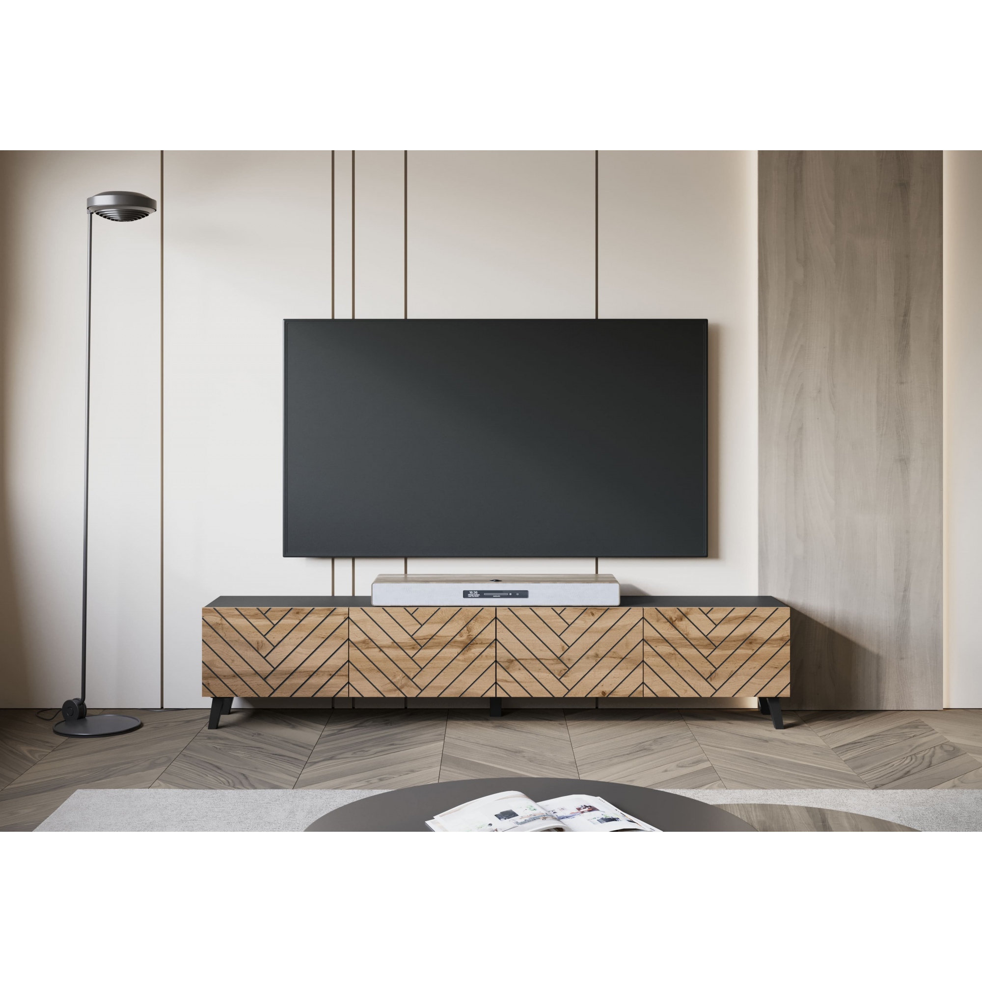 Długa szafka RTV "LOKET" 190 cm, front MDF z wzorem 3D