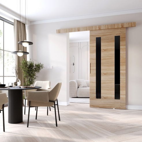 Sie suchen nach Schiebetüren für Ihr Haus? Unsere Türen aus der CLEAN-Kollektion sind perfekt für Sie. Jedes Modell wird in vier Farbvarianten (Weiß, Sonoma-Eiche, Wenge und Grau-Jede Farbe hat schwarze Zierelemente) hergestellt und ist außerdem in vier Breiten (76, 86, 96, 106 cm) erhältlich. Das macht es Ihnen leicht, die perfekte Tür für Ihre Einrichtung zu finden. CLEAN ist eine Universaltür, d.h. Sie entscheiden, ob es sich um eine Links- oder Rechtshändertür handelt. Hergestellt aus hochwertiger Möbelplatte, so dass sie jahrelang halten werden.