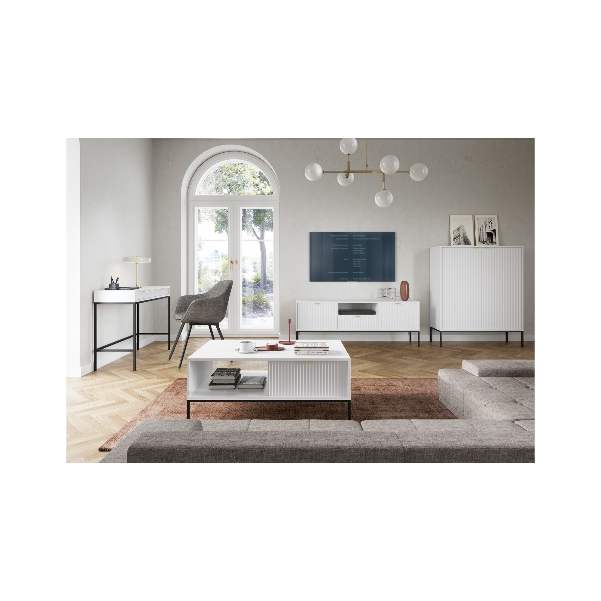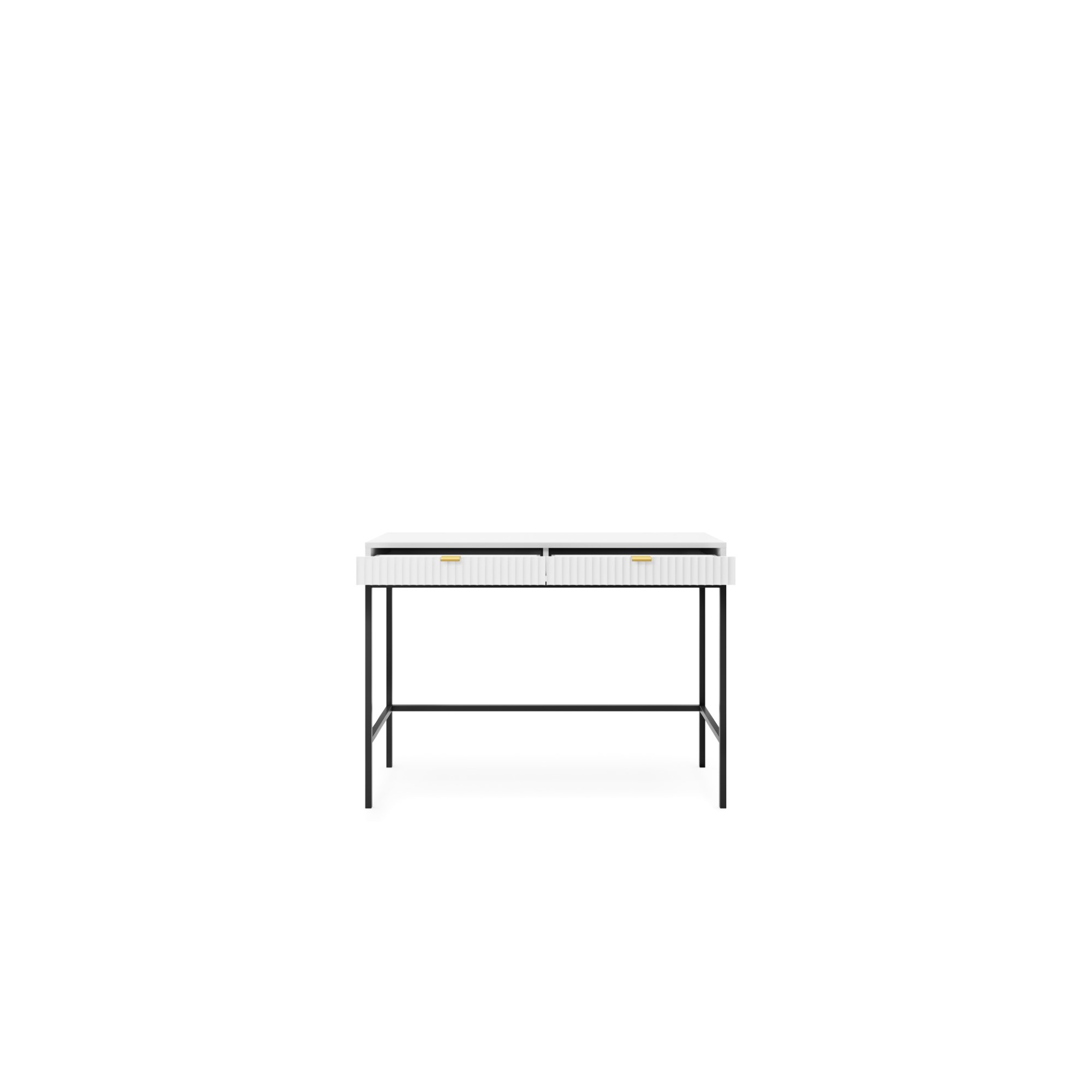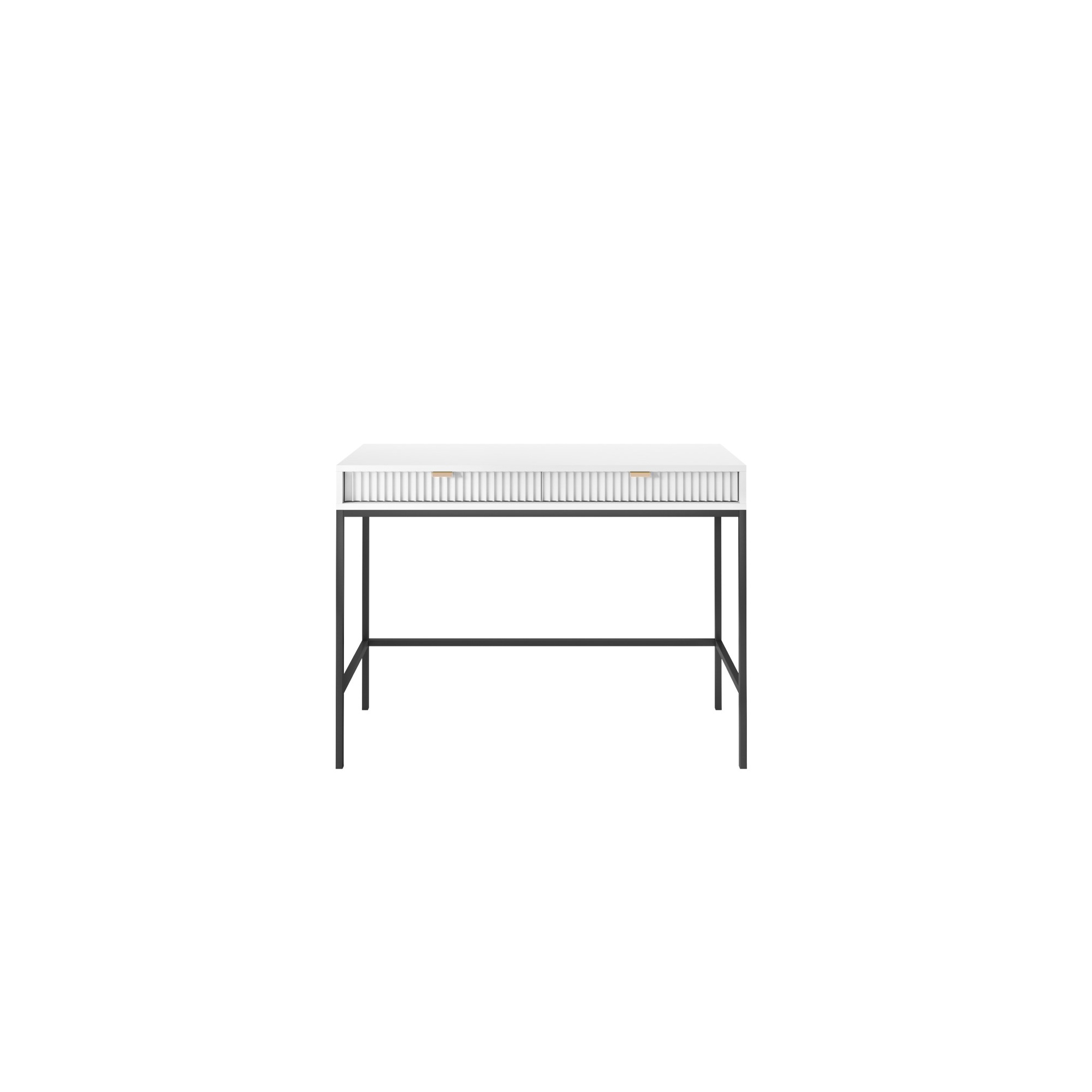 Moderner Schminktisch mit Schubladen. Ein Möbelstück, das sich ideal für das Büro als Schreibtisch oder das Schlafzimmer als Schminktisch eignet. Die Farbe in Kombination mit den dekorativen MDF-Fronten verleiht dem Möbelstück einen interessanten Look. Bei den individuellen Details wie den Griffen und der Farbe der Beine können Sie Ihrer Fantasie freien Lauf lassen. Stellen Sie sich die Einrichtung Ihres Zuhauses wie auf den Titelseiten der besten Zeitschriften vor.