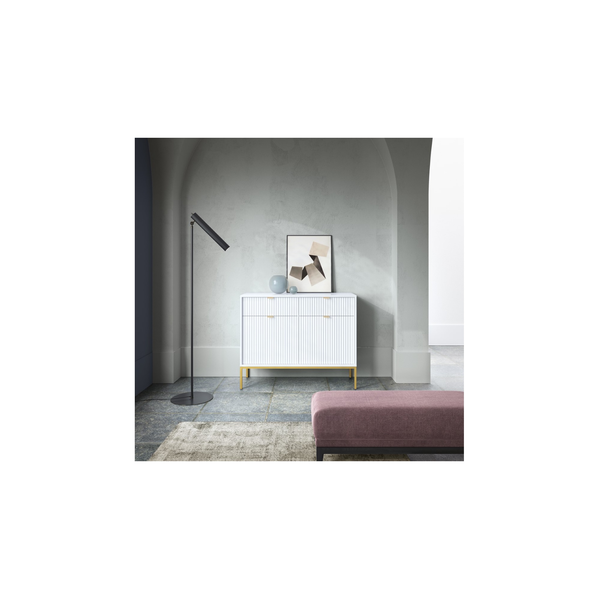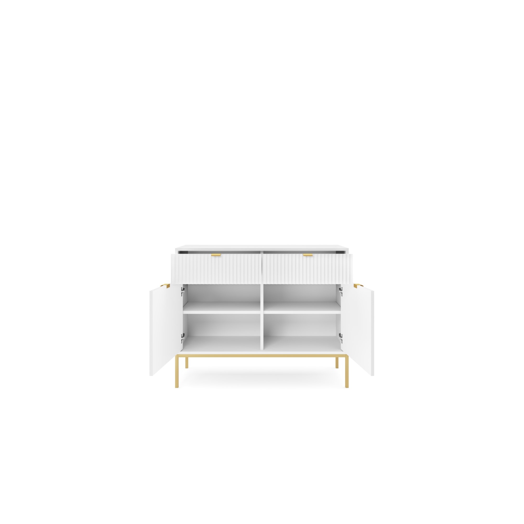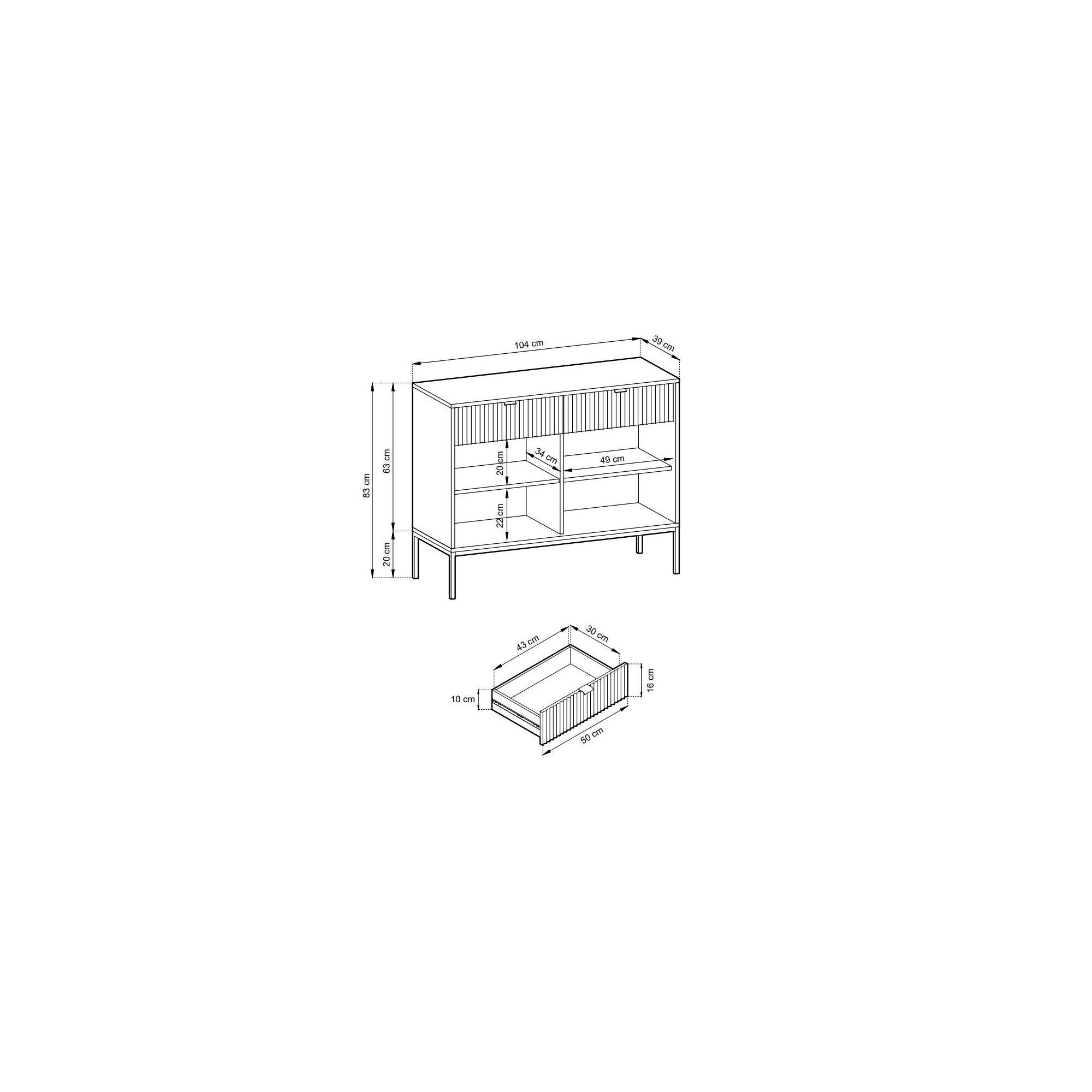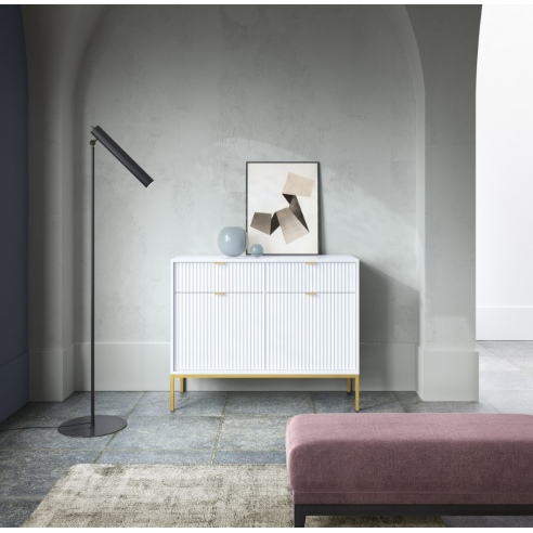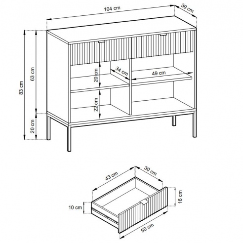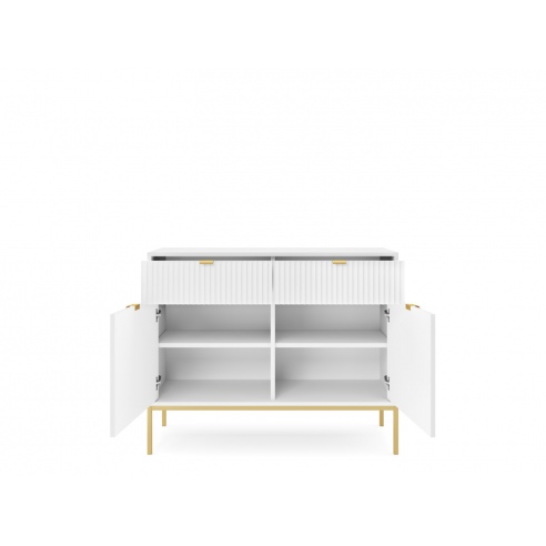 Die Kommode aus der Kollektion NOVA verbindet alle besten Eigenschaften der industriellen Möbel. Ihre Grundlage bilden starke Metallfüße in der schwarzen Farbe. |