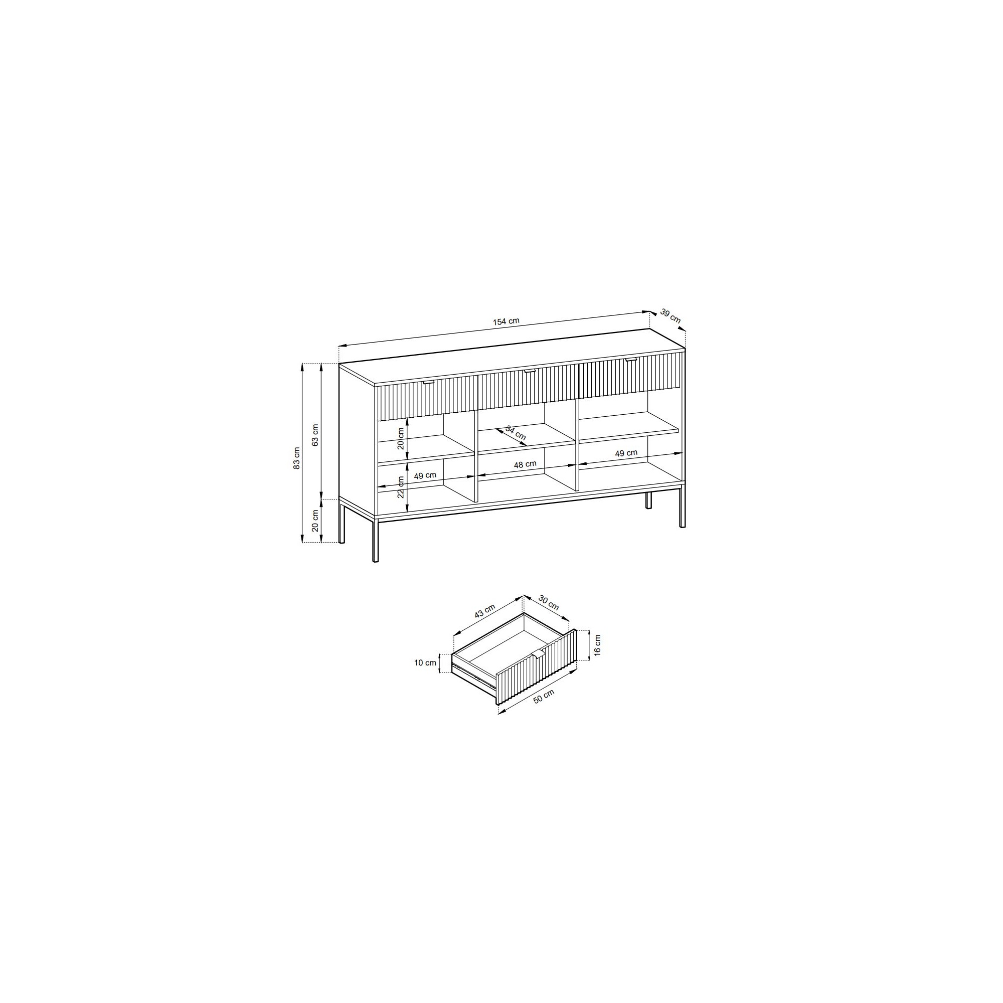 Abmessungen: B: 154 x H: 83 x T: 39cm |