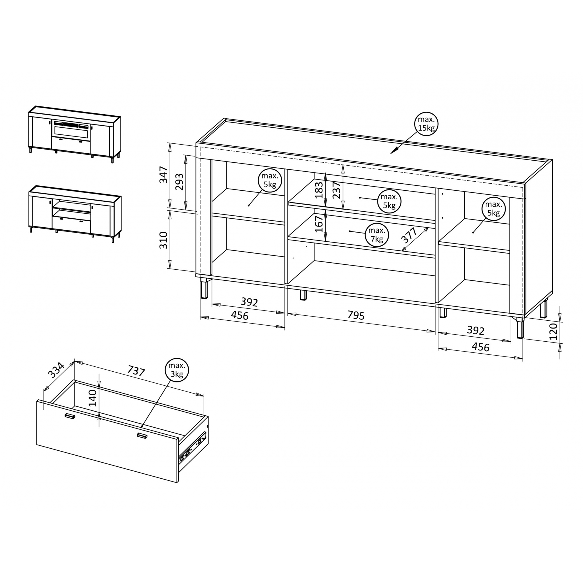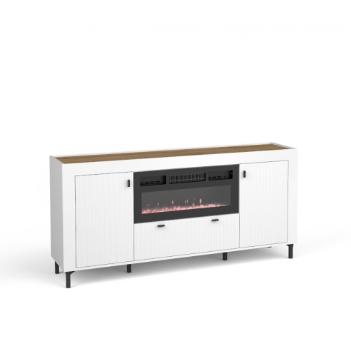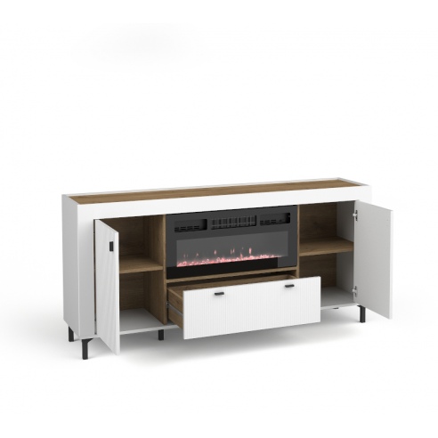 Komoda "ASSO 7" z otwartymi półkami i szufladą/kominek LED