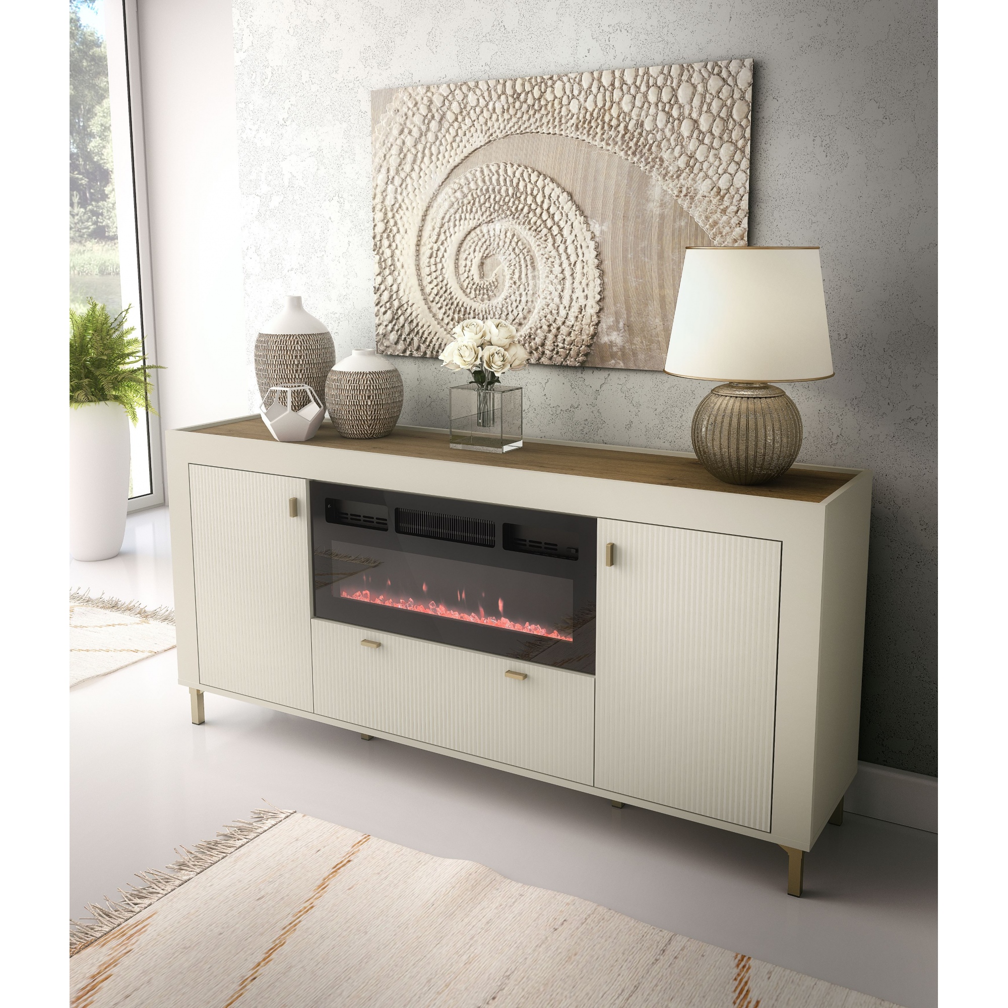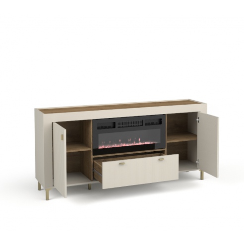 Komoda "ASSO 7" z otwartymi półkami i szufladą/kominek LED