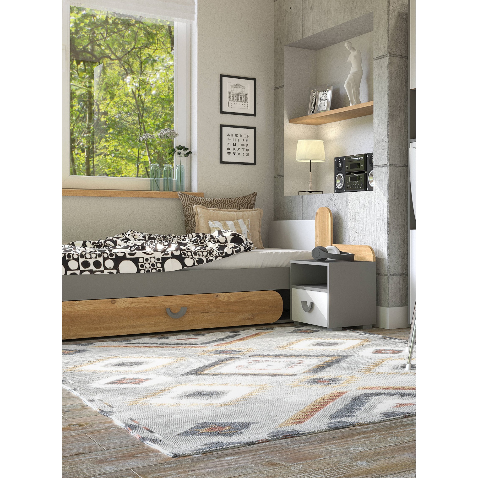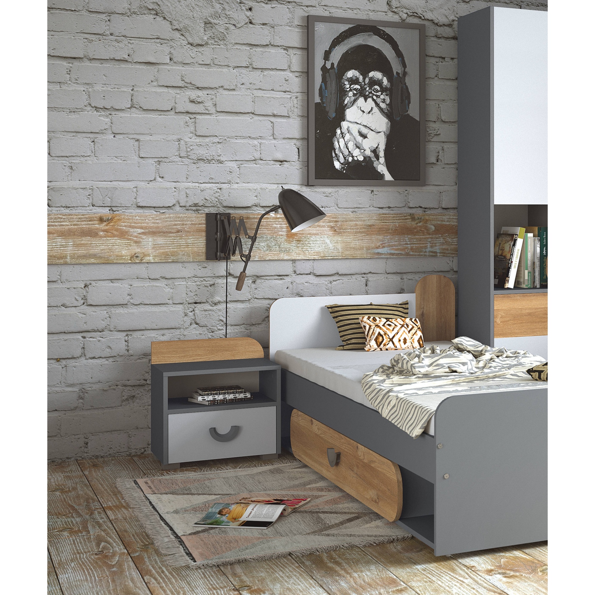 Szafka nocna Carina Dąb Nash / biały / jasny grafit