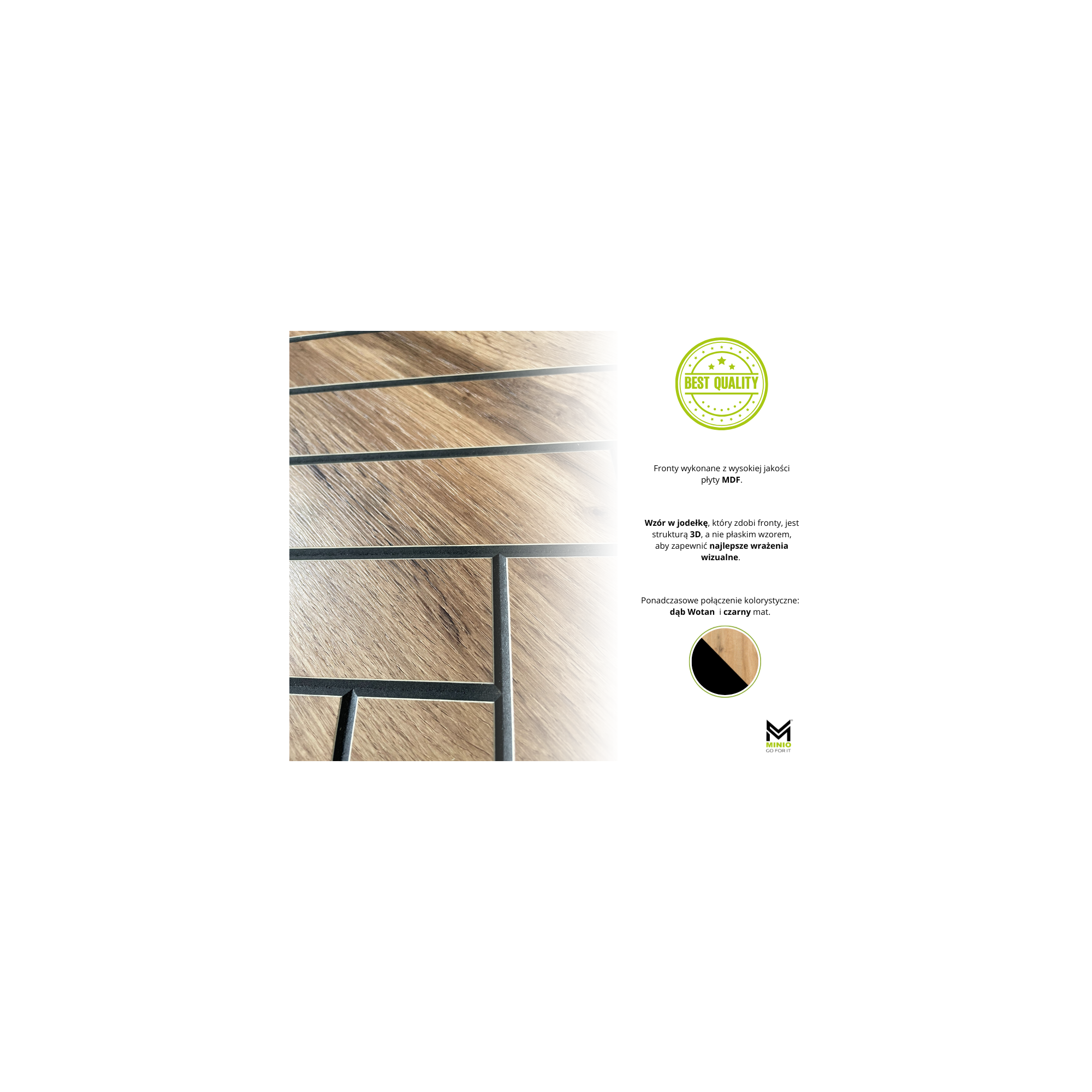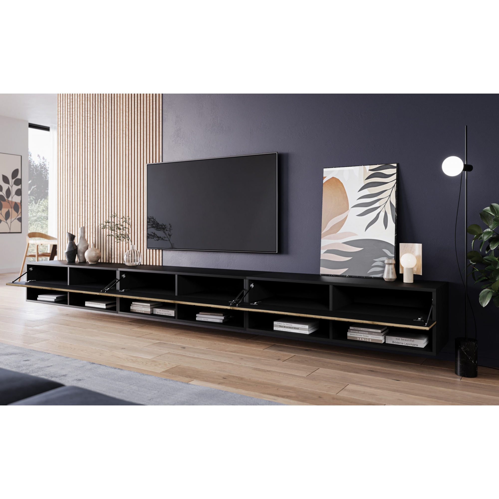 Szafka RTV "ANNE",300 cm, czarny grafit /front dąb wotan MDF Jodełka