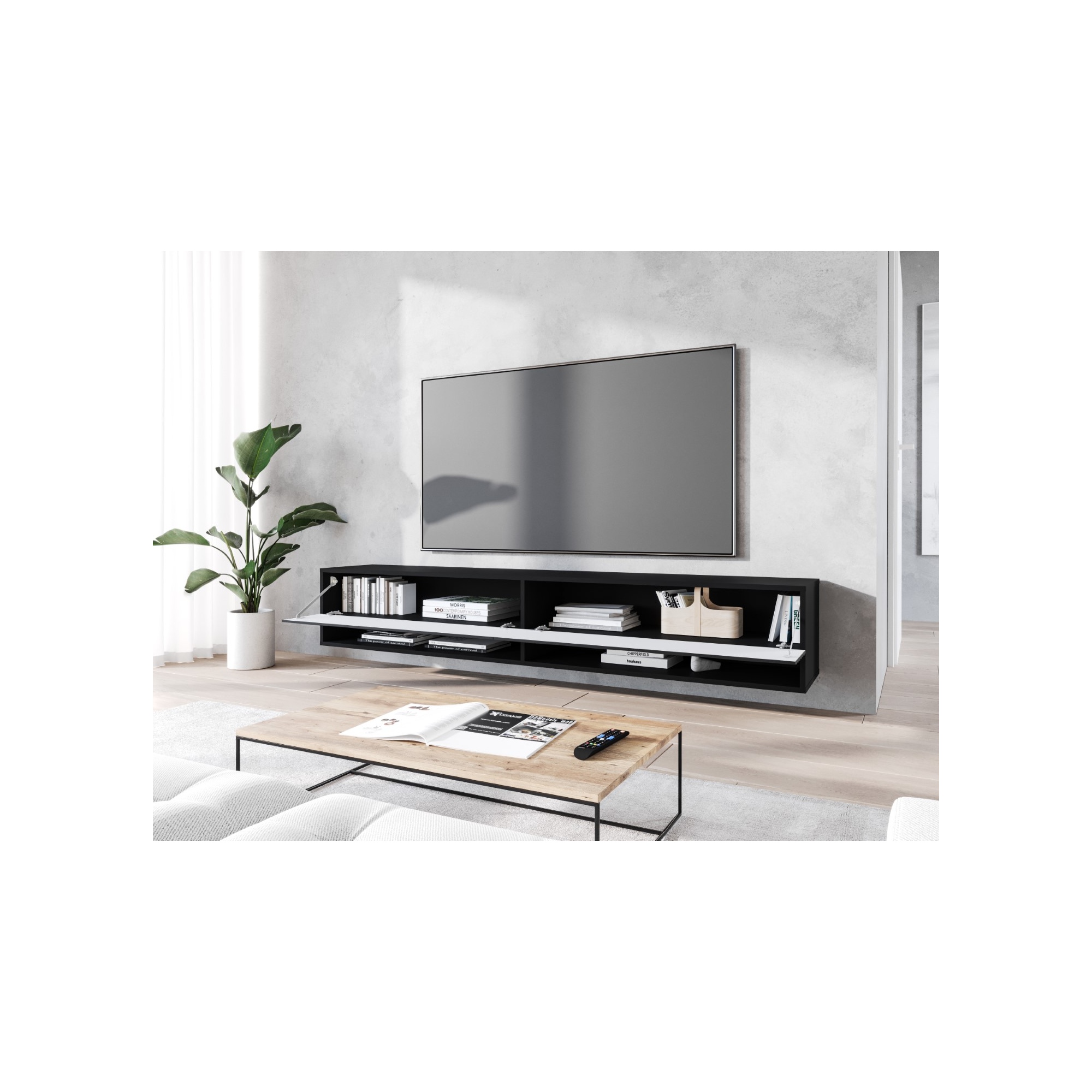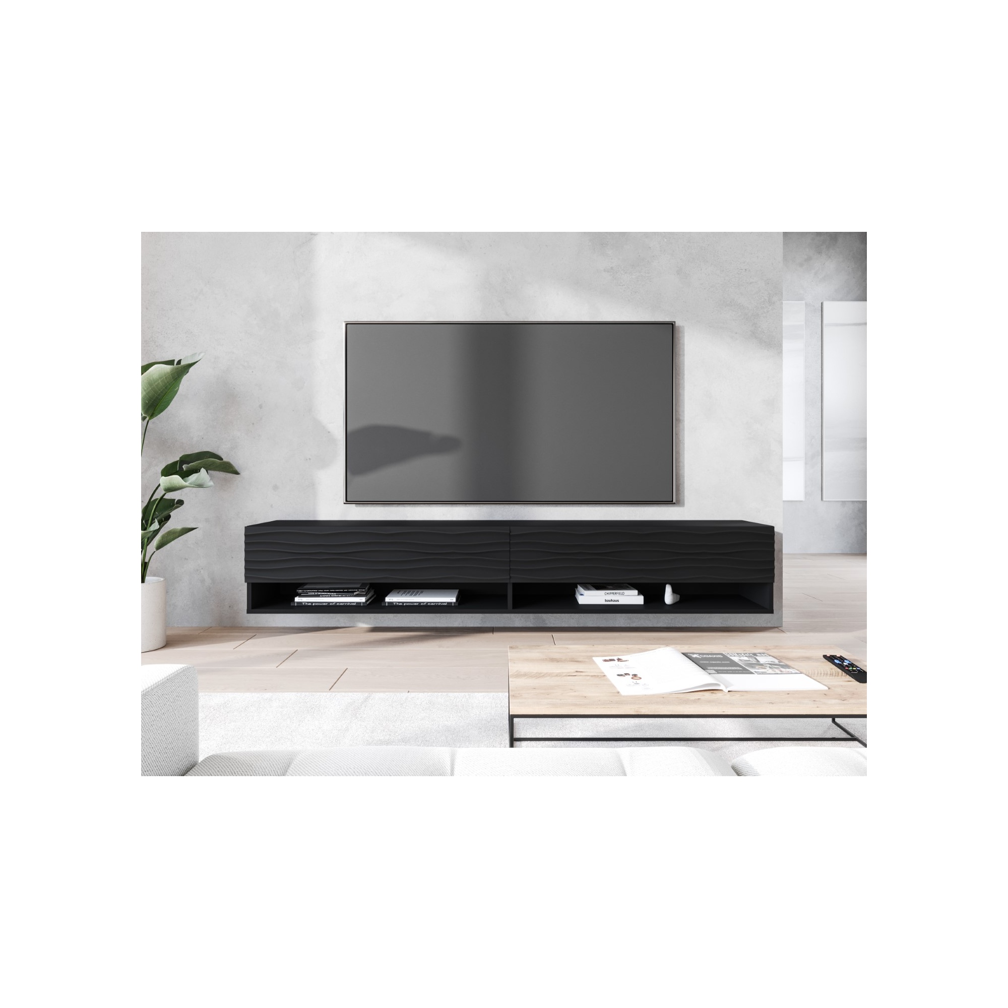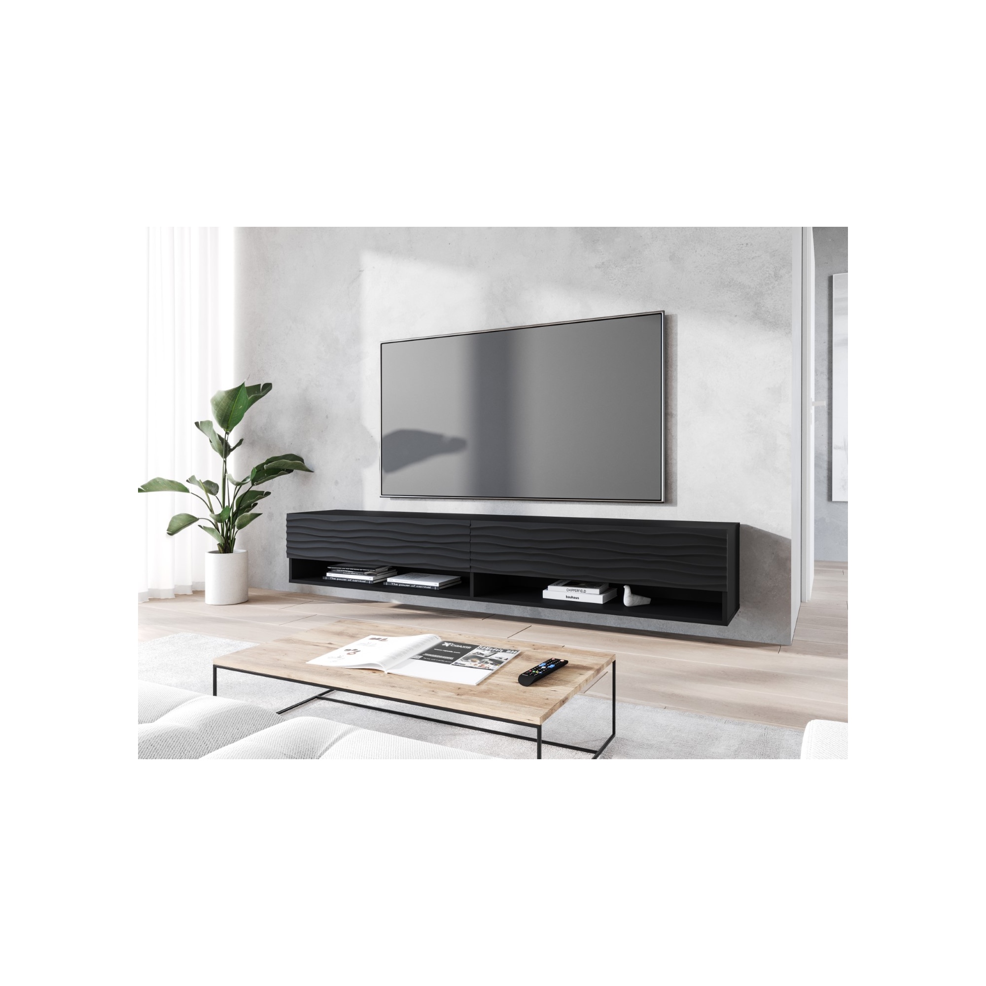 Wisząca lub stojąca szafka RTV "ANNE", 180 cm, front MDF wzór 3D