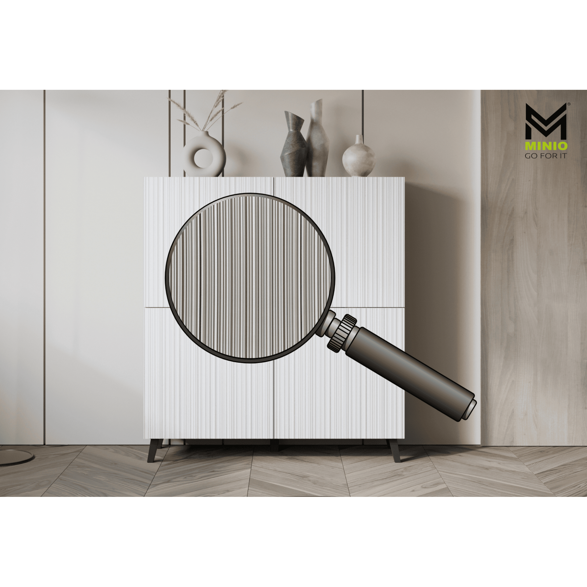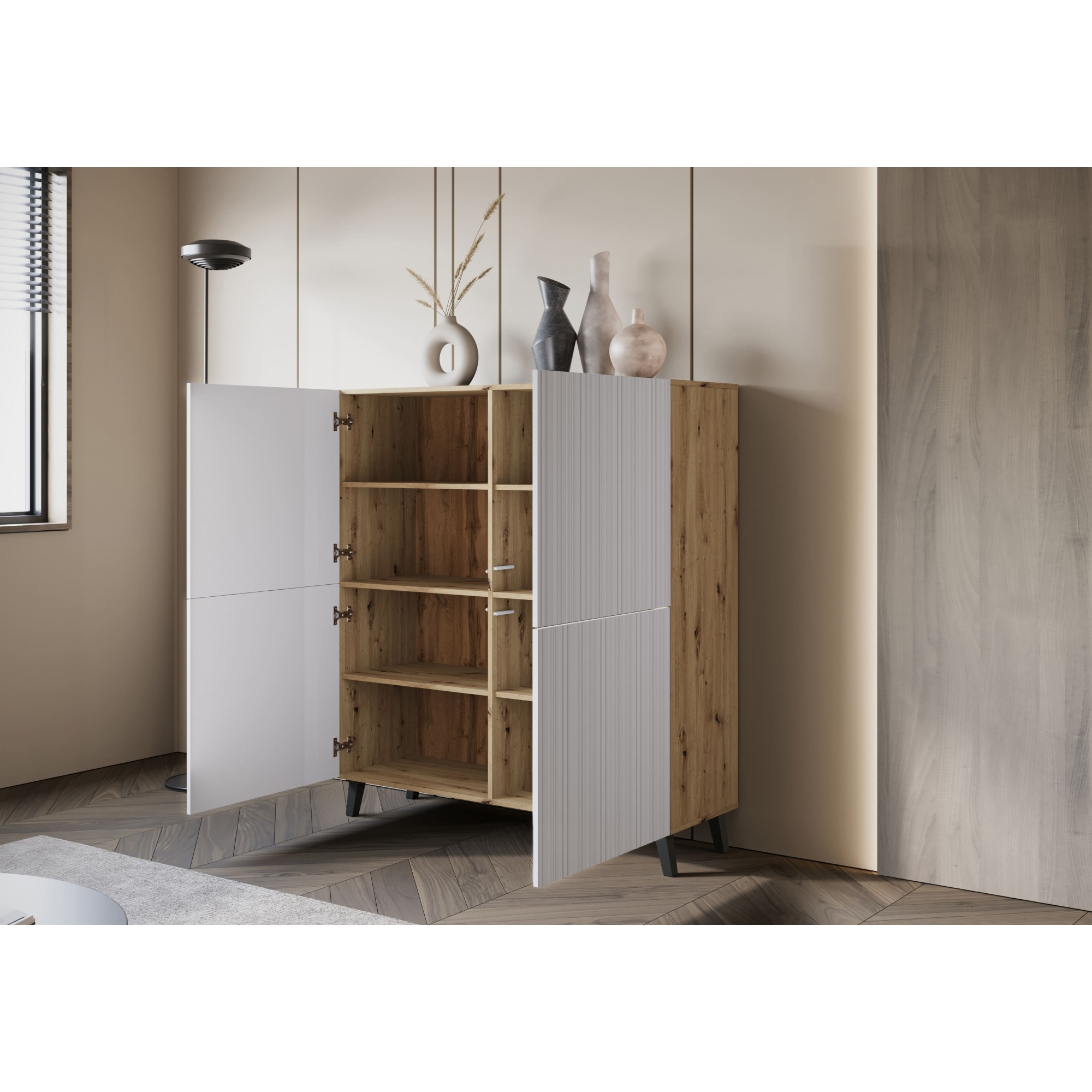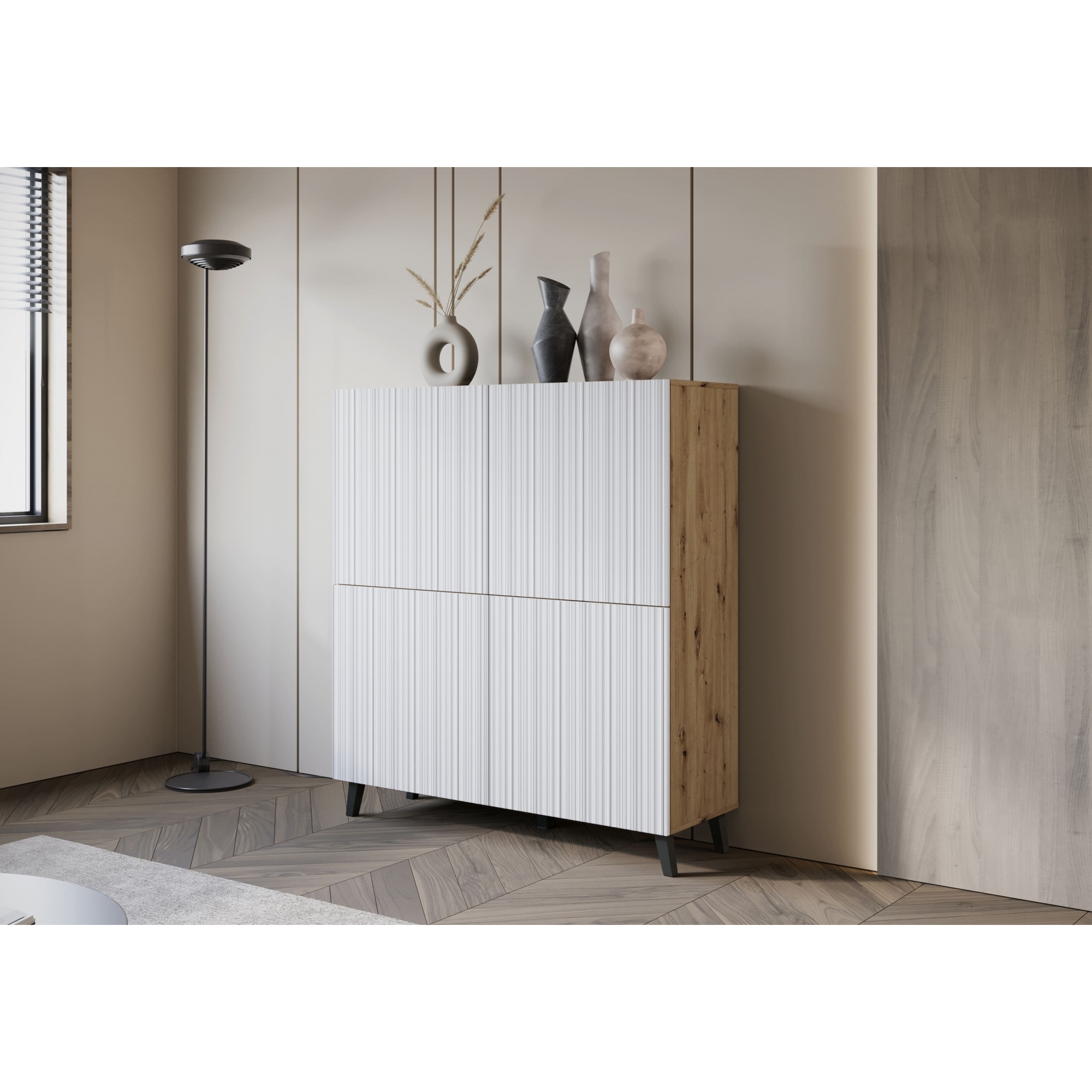 Wysoka komoda "LOKET", front MDF z wzorem 3D