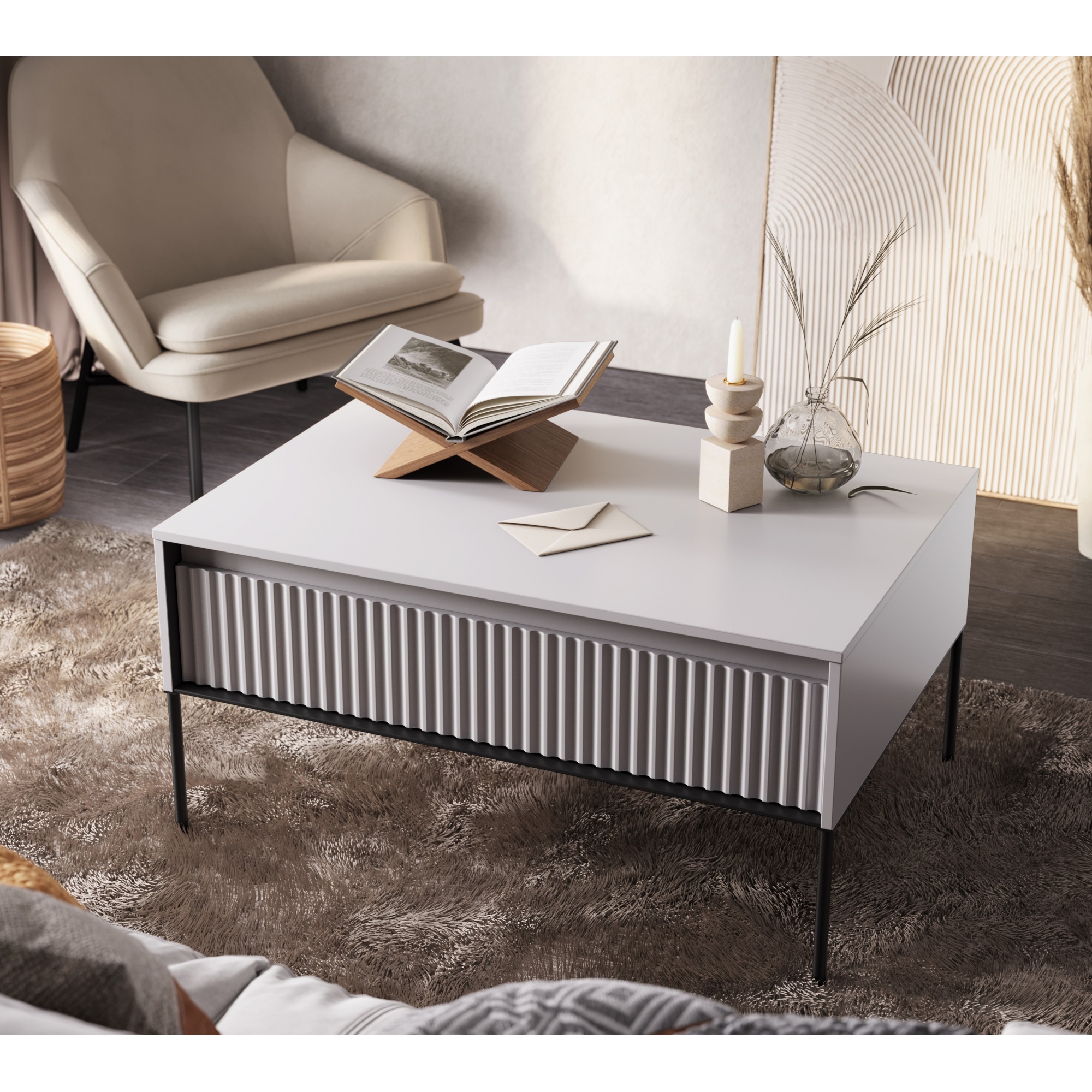 Der Couchtisch mit geriffelter Front ist die perfekte Kombination aus Funktionalität, Stil und Qualität. Er wird der Mittelpunkt Ihres Wohnzimmers sein, der die Blicke auf sich zieht und dem ganzen Raum Charakter verleiht.eines seiner Merkmale ist die geriffelte Front, hinter der sich eine geräumige Ablage befindet. Dieses elegante Detail verleiht ihm nicht nur einen besonderen Charme, sondern auch einen einzigartigen Look. Er ist in fünf Farbvarianten erhältlich: