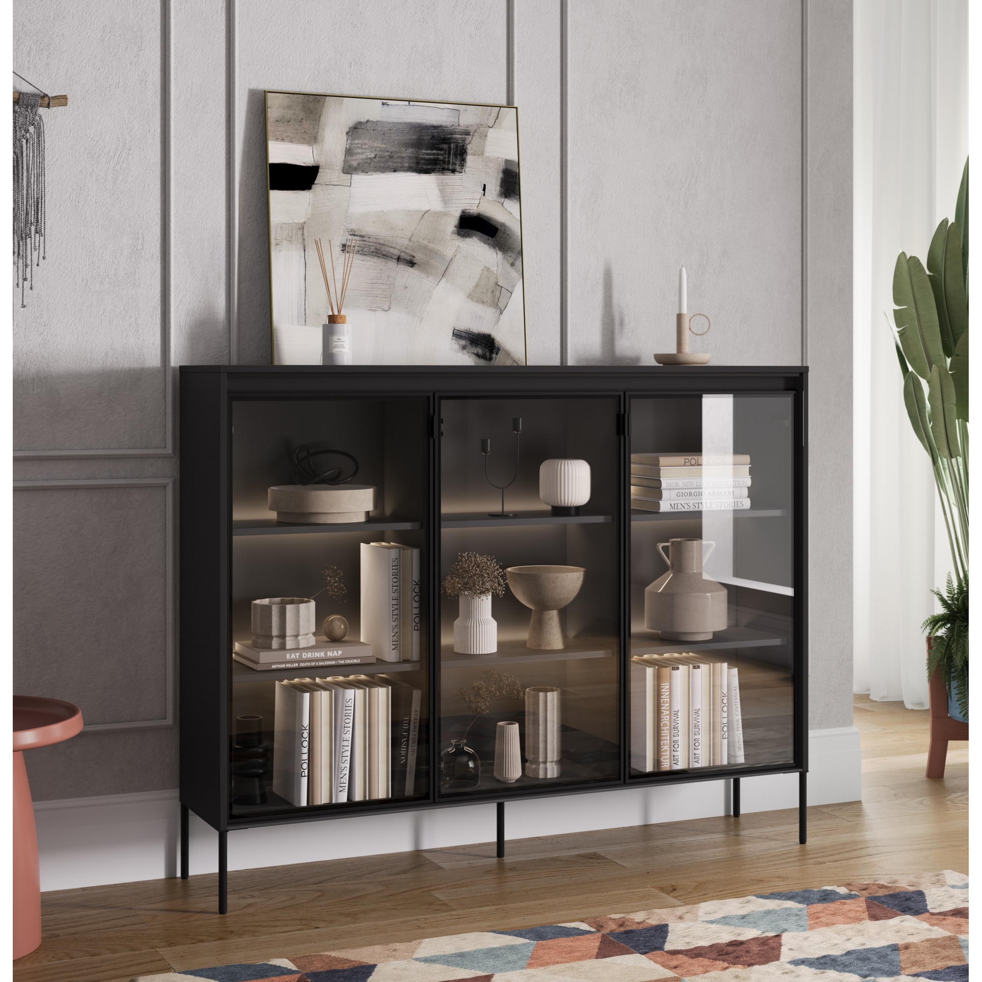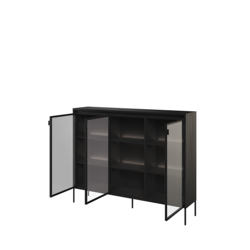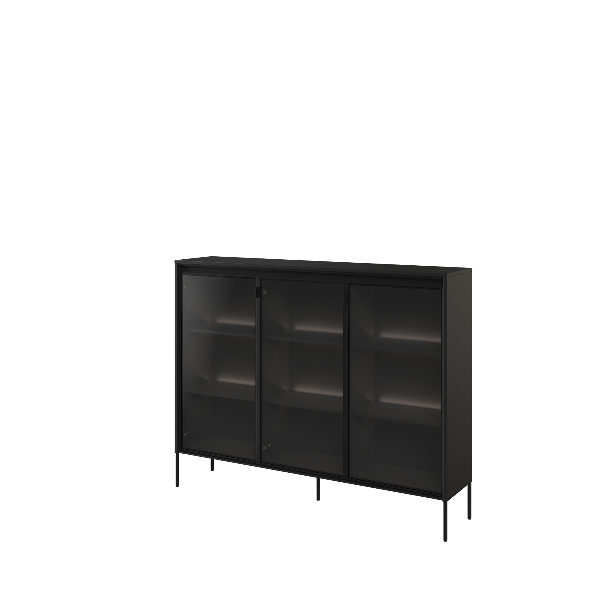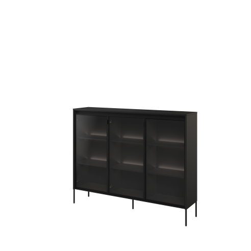 Die verglaste Kommode ist nicht nur ein Stauraum, sondern auch ein einzigartiges Möbelstück, das schon beim Betreten der Wohnung ins Auge fällt. Die Glastür gibt Ihnen die Möglichkeit, all die Dinge zu präsentieren, die Sie ausstellen möchten. Das können nicht nur Souvenirs sein, sondern auch Fotos und sogar Bücher. Die Kommode wurde sorgfältig aus hochwertigen Materialien gefertigt, was die Langlebigkeit und Robustheit des Möbels garantiert. Dank der mitgelieferten LED-Beleuchtung bringen Sie eine warme Atmosphäre in den Raum. Optional können Sie die Kommode auch mit einer Beleuchtung hinter den Einlegeböden ausstatten.