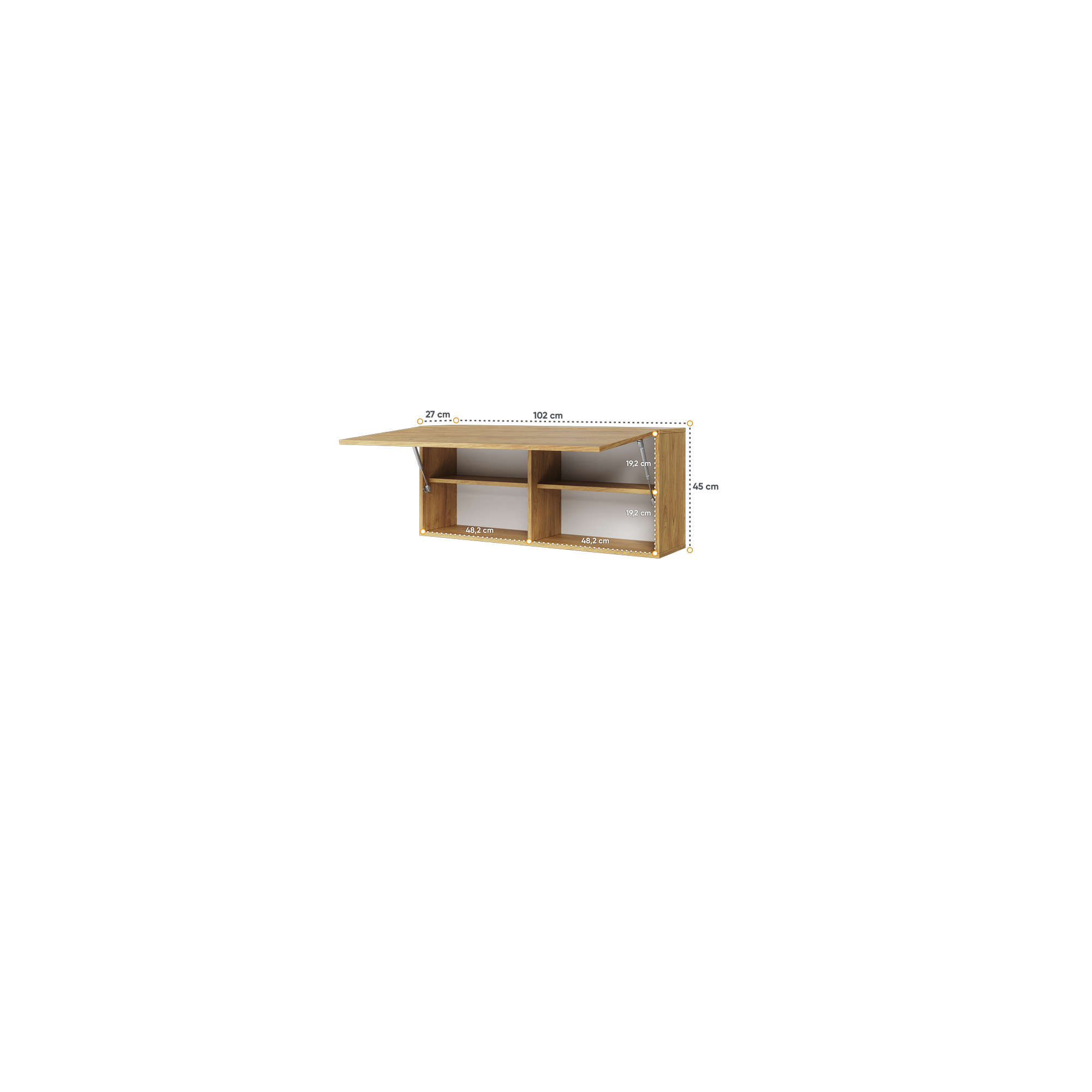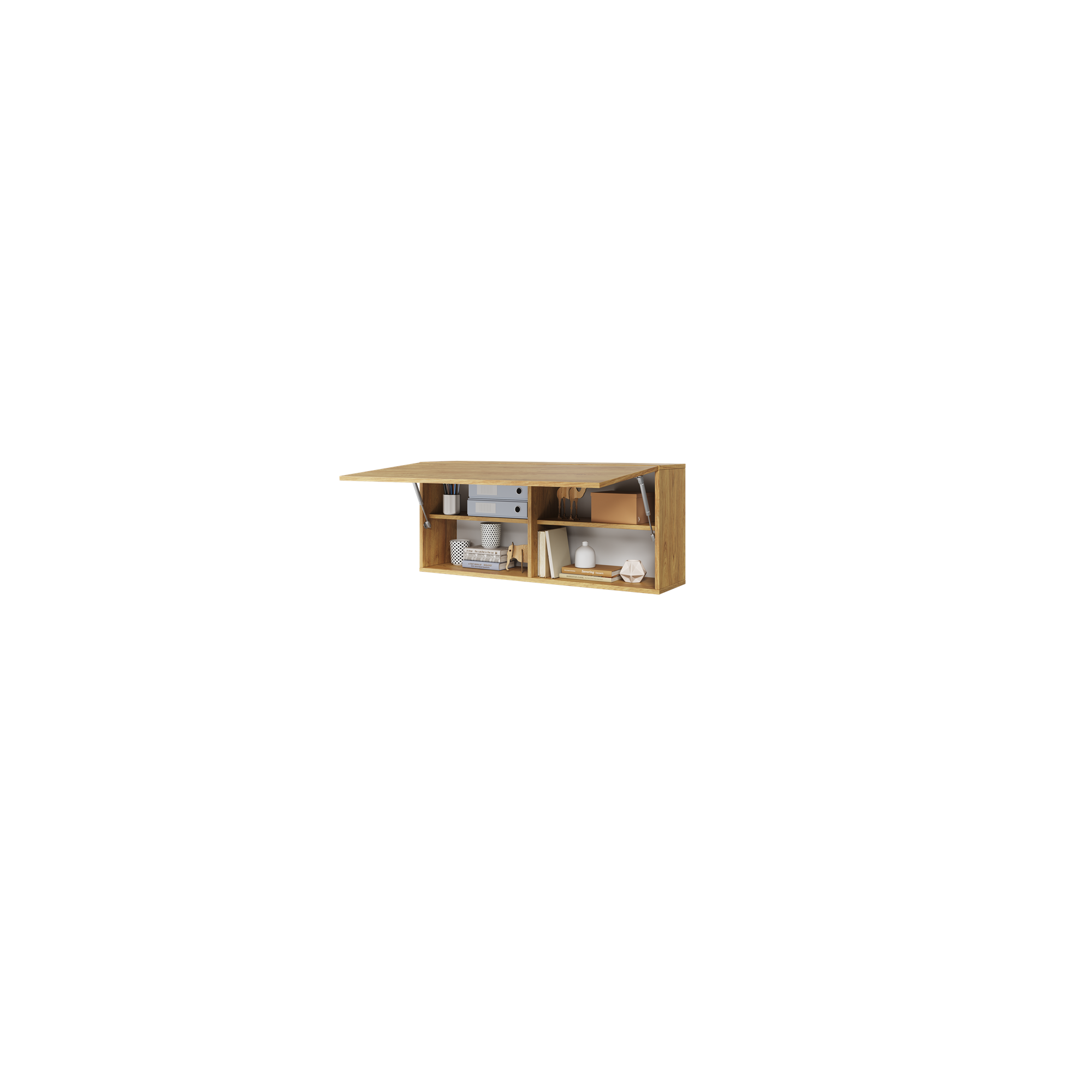 Der Hängeschrank 102 cm aus der Kollektion Teen Flex ist ideal für Ihr Zuhause. Er ist in der Farbe Hickory natur gehalten, wodurch er sich perfekt in jede Einrichtung einfügt. Die grifflosen Fronten setzen einen interessanten Akzent. Er hat eine Flügeltür, hinter der sich zwei Fächer befinden, die viel Stauraum bieten. So kann der Platz an der Wand genutzt werden, um Bücher, Hefte oder andere Gegenstände aufzubewahren. Hergestellt aus hochwertiger Möbelplatte.