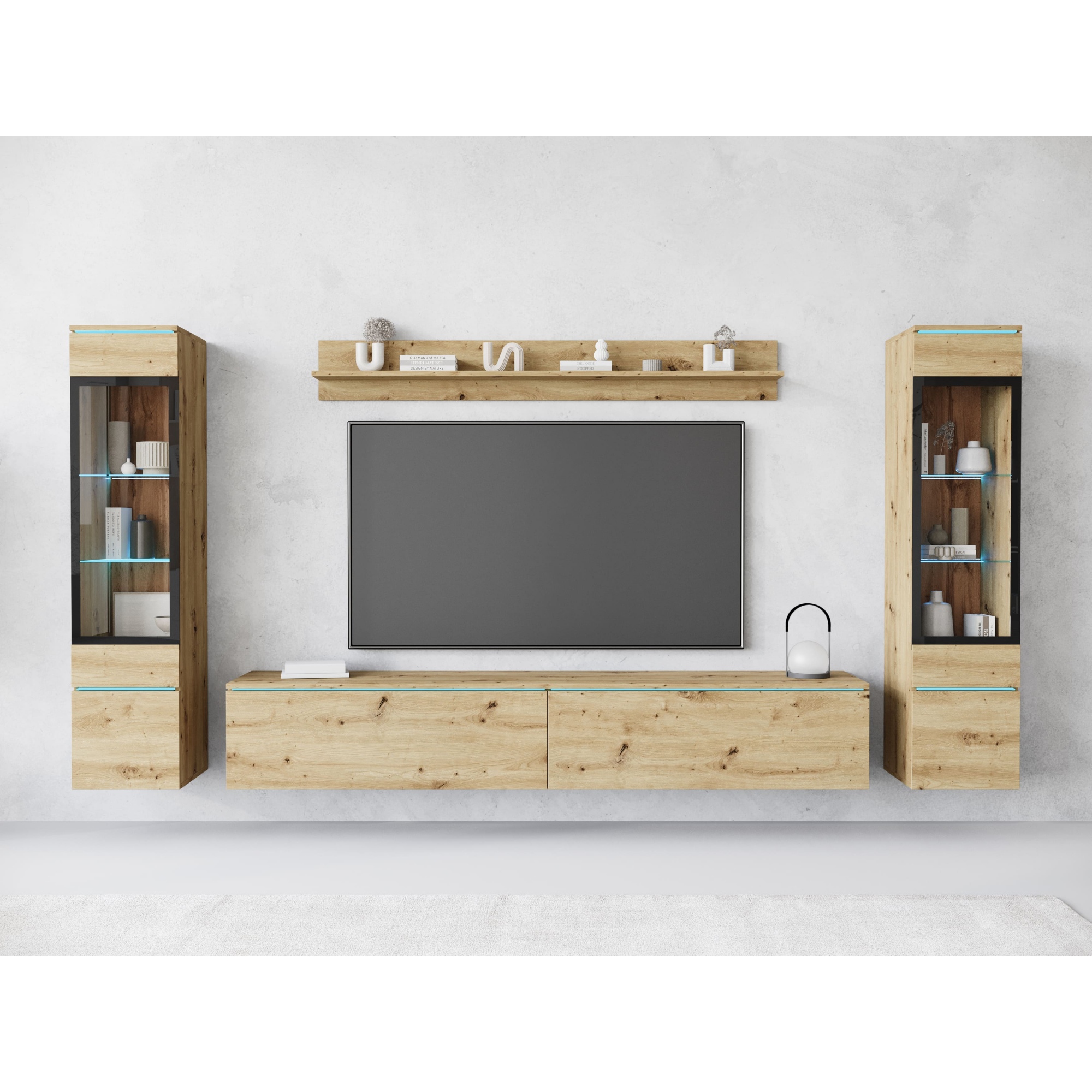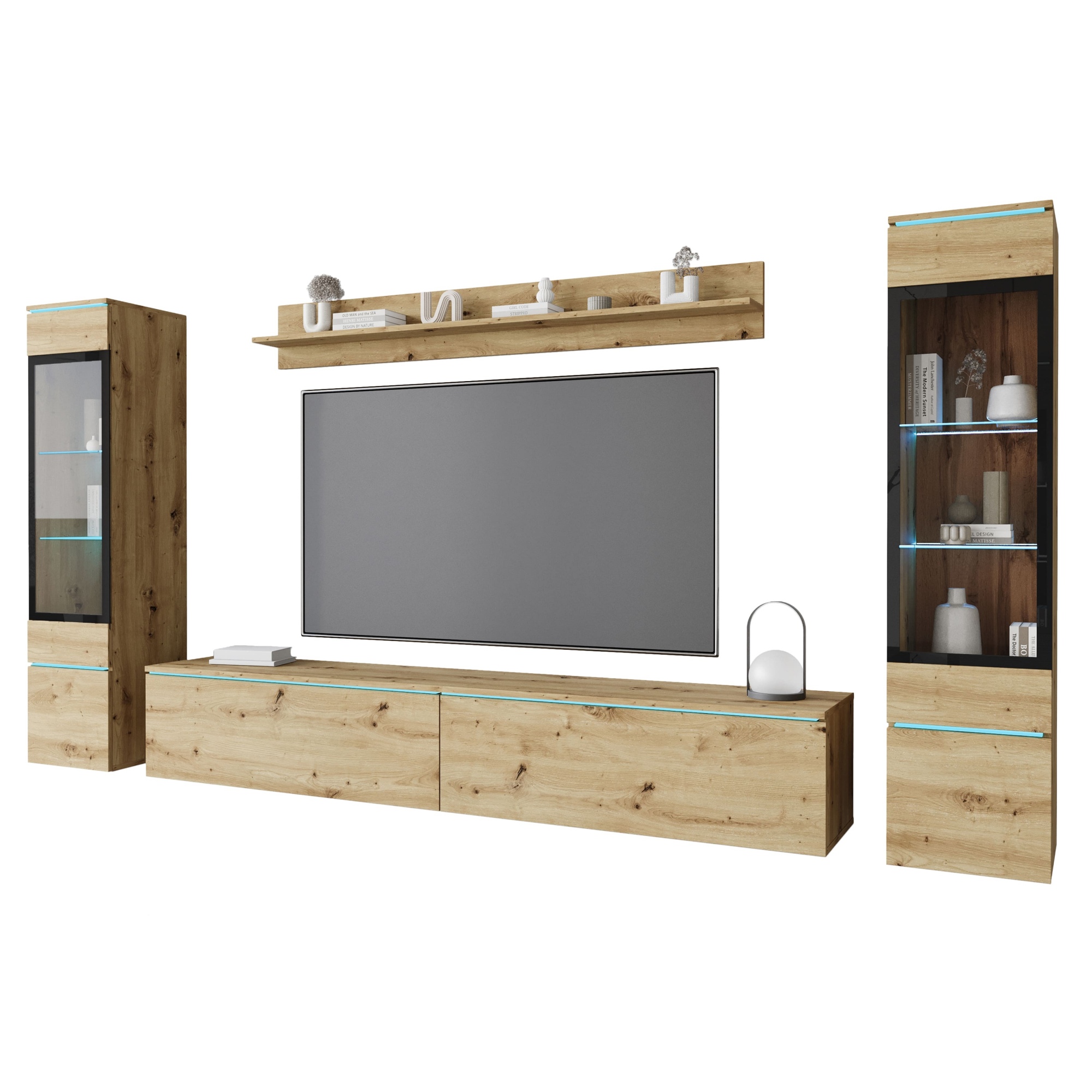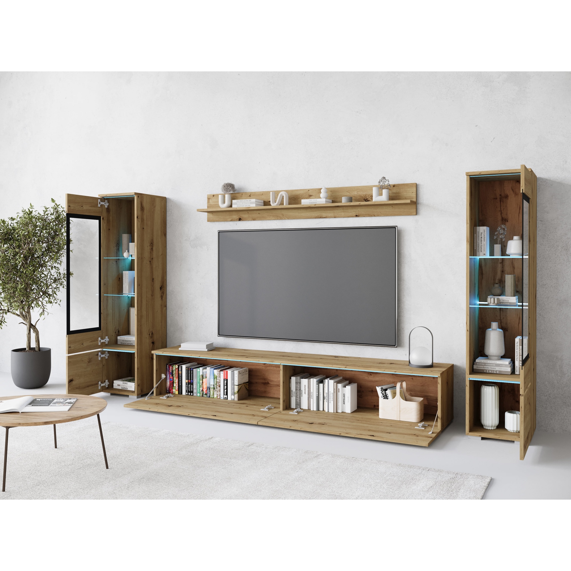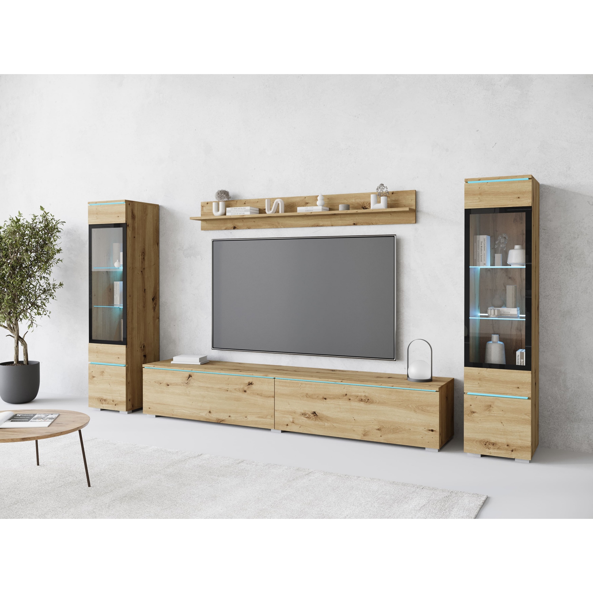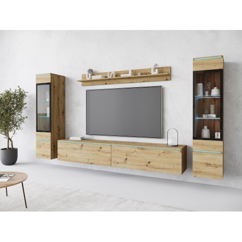 Meblościanka do salonu VEVE 2 wotan/czarny połysk