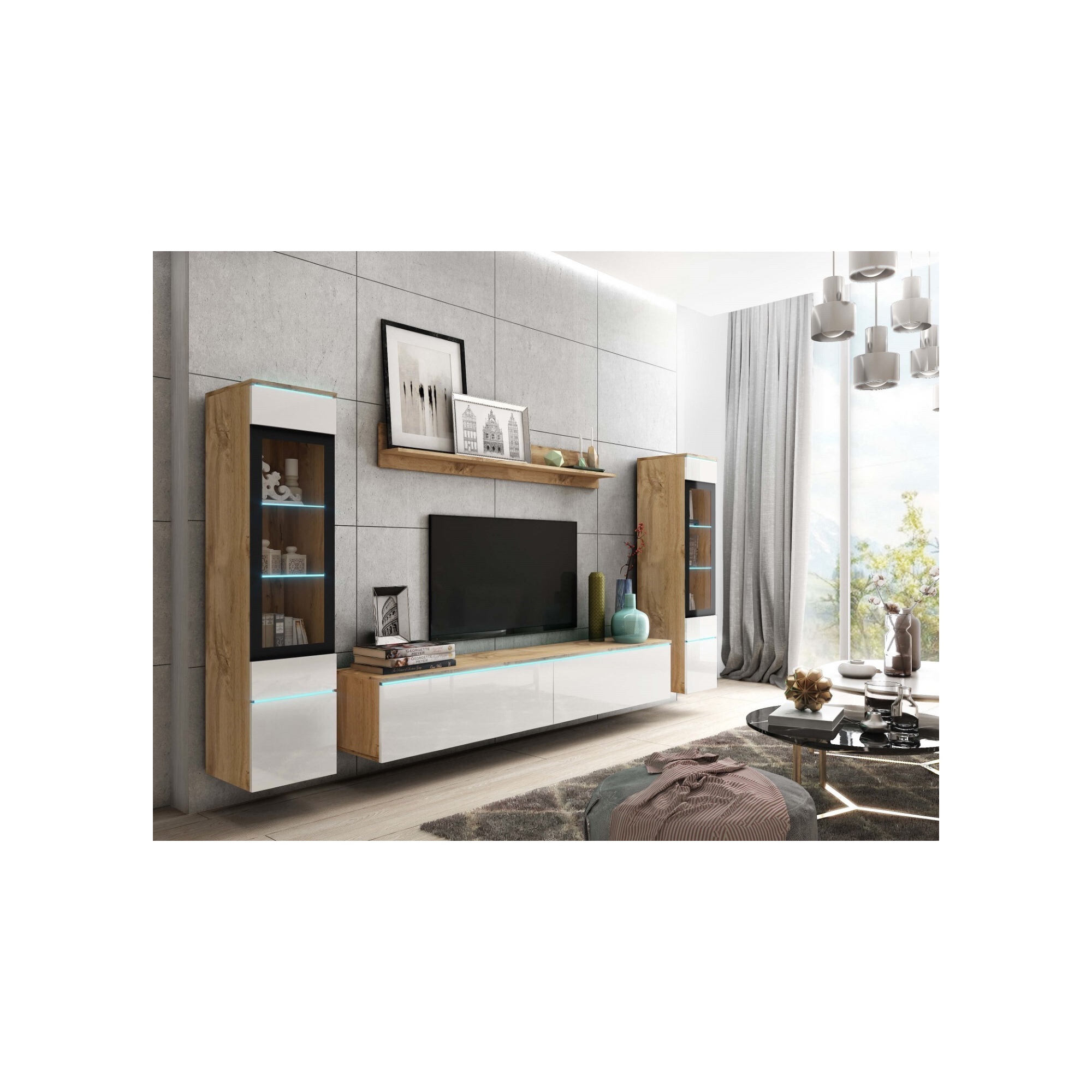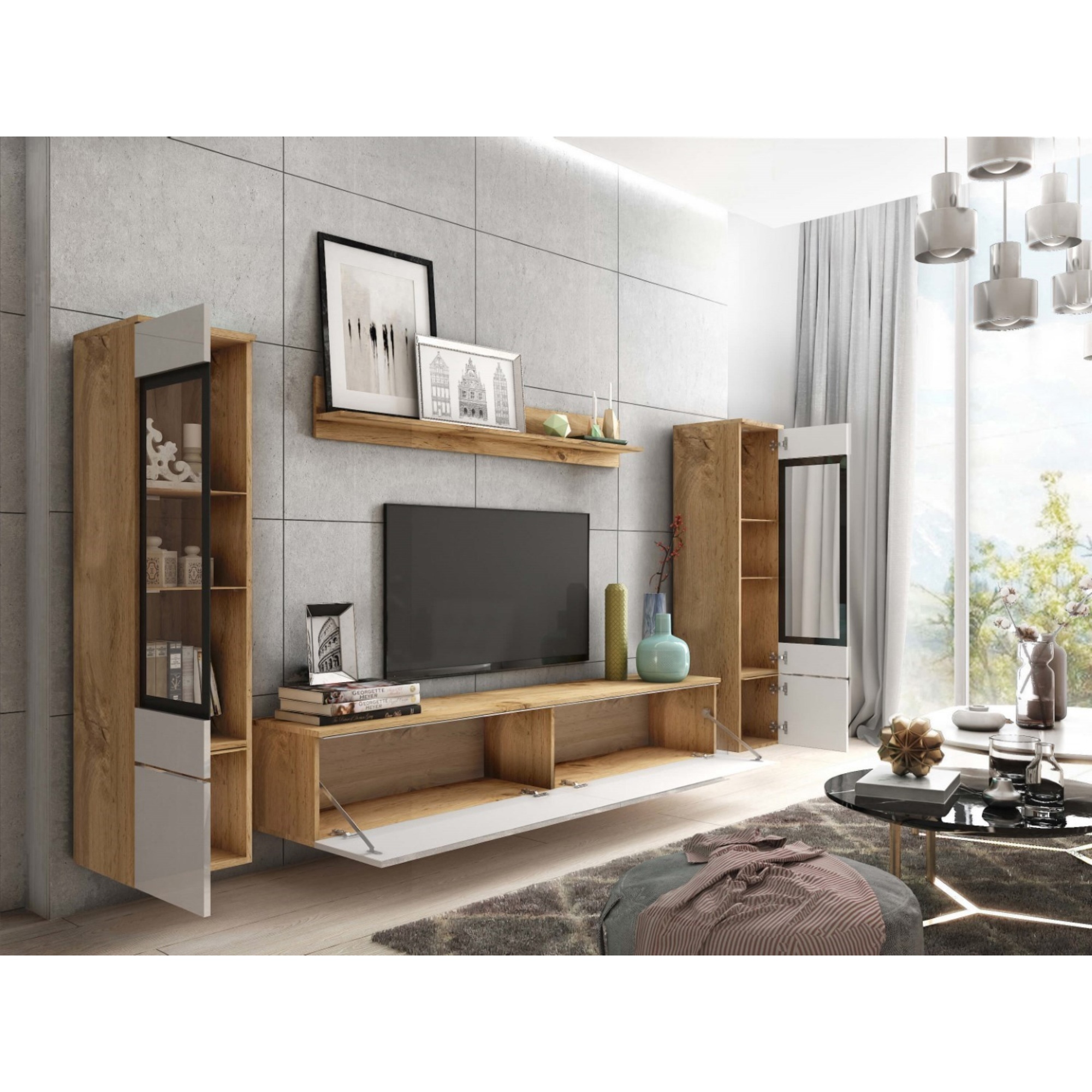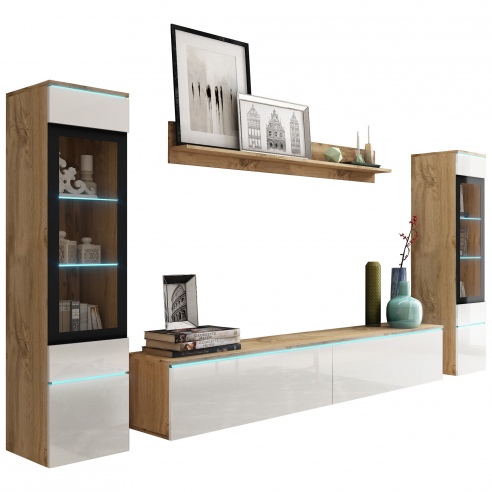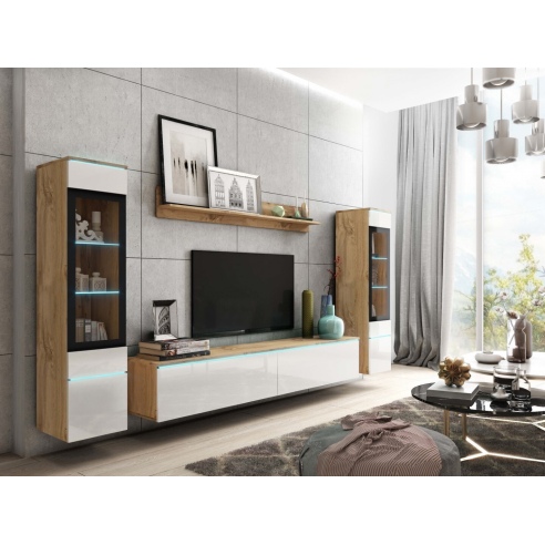 Meblościanka do salonu VEVE 2 wotan/czarny połysk